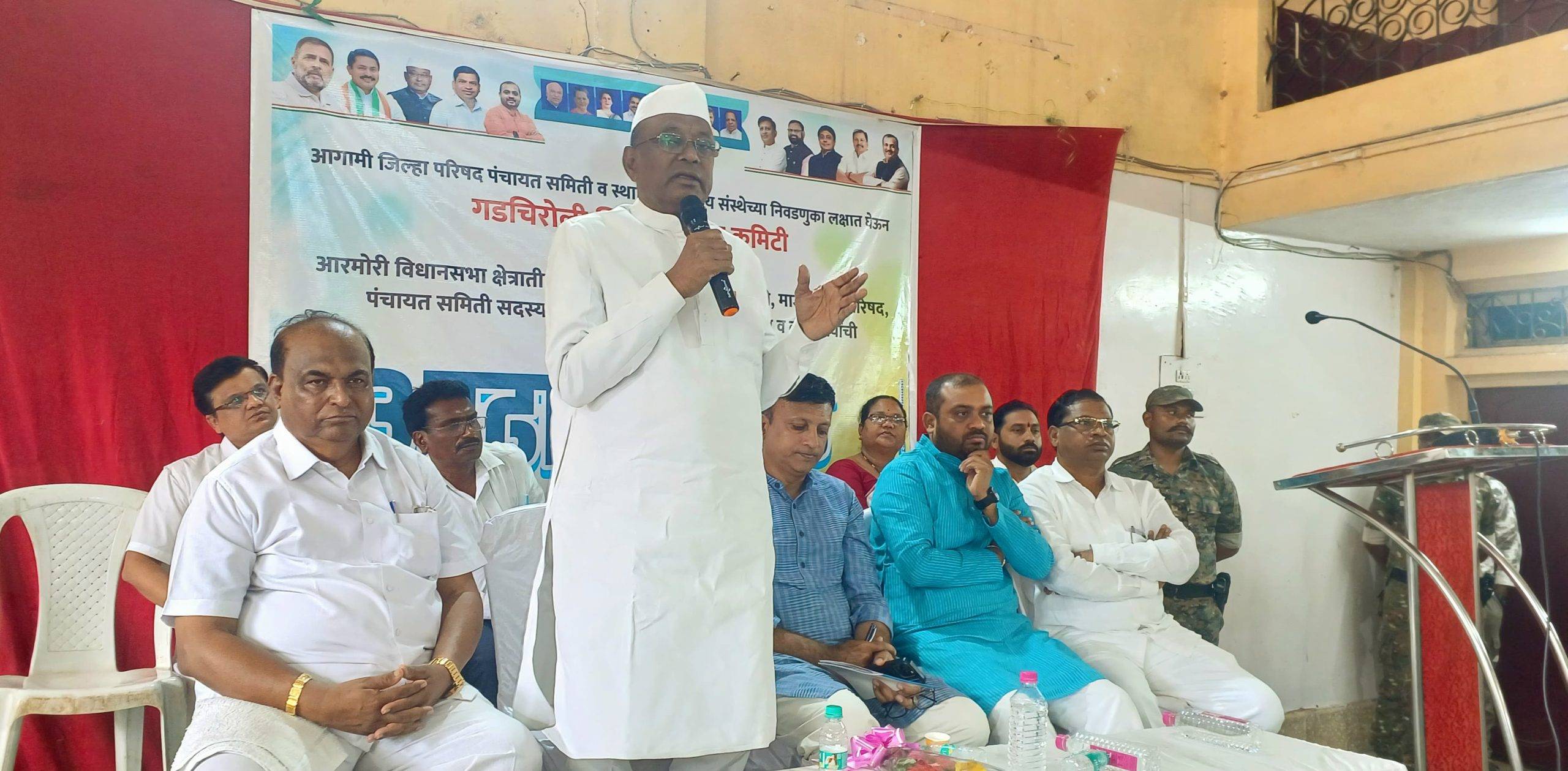 गडचिरोली – गडचिरोली जिल्हा काँग्रेस कमिटीच्या वतीने आरमोरी विधानसभा क्षेत्रातील पदाधिकारी व कार्यकर्त्यांची आढावा बैठक पार पडली. आगामी स्थानिक स्वराज्य संस्थांच्या निवडणुकांचा विचार करता, संघटनात्मक बांधणी, कार्यपद्धती आणि पक्ष बळकटीसाठी ही बैठक अत्यंत महत्त्वपूर्ण ठरली.या बैठकीला गडचिरोली-चिमूर लोकसभा क्षेत्राचे लोकप्रिय खासदार डॉ. नामदेवजी किरसान, आरमोरी विधानसभा क्षेत्राचे आमदार रामदास मसराम, काँग्रेस निरीक्षक सचिनजी नाईक तसेच जिल्हाध्यक्ष महेंद्र ब्राह्मणवाडे हे प्रमुख मार्गदर्शक म्हणून उपस्थित होते. त्यांनी आपल्या मनोगतातून कार्यकर्त्यांमध्ये नवचैतन्य निर्माण करत पुढील निवडणुकांसाठी सज्ज राहण्याचे आवाहन केले. त्यांनी संघटनेच्या मजबुतीसाठी प्रत्येक पातळीवरील कार्यकर्त्यांनी संघटीत आणि जिद्दीने काम करण्याचे निर्देश दिले.या बैठकीला माजी जिल्हा परिषद उपाध्यक्ष तथा तालुका अध्यक्ष काँग्रेस कमिटी कुरखेडा जीवन पाटील नाट, तालुकाध्यक्ष काँग्रेस कमिटी आरमोरी मिलिंद खोब्रागडे, तालुकाध्यक्ष काँग्रेस कमिटी वडसा राजेंद्र बुल्ले, तालुकाध्यक्ष काँग्रेस कमिटी कोरची मनोज अग्रवाल,तालुकाध्यक्ष काँग्रेस कमिटी धानोरा प्रशांत कोराम, जिल्हाध्यक्ष ओबीसी सेल भूपेश कोलते, जिल्हाध्यक्ष किसान काँग्रेस वामनराव सावसाकडे, जिल्हा उपाध्यक्ष जयंत पाटील सरडे, माजी जिल्हा परिषद सदस्य प्रभाकर तुलावी, माजी जिल्हा परिषद सदस्य जयमालाताई पेदाम, माजी नगराध्यक्ष जेसाभाऊ मोटवानी, माजी सभापती परसरामजी टिकले, माजी सभापती गिरधर तितराम, माजी उपसभापती नितीन राऊत, माजी नगराध्यक्ष आशाताई तुलावी, तालुकाध्यक्ष युवक काँग्रेस पंकज चहादे, माजी पंचायत समिती सदस्या सौ. सध्याताई नैताम, सौ. आरती लहरी, सौ. भारती कोसरे, निलोफर शेख, हिरा मोटवानी, हकीमुदीन शेख यांचा समावेश होता.याशिवाय आरमोरी, वडसा, कुरखेडा, कोरची धानोरा तालुक्यातील काँग्रेस पदाधिकारी, महिला कार्यकर्त्या, युवक प्रतिनिधी आणि कार्यकर्ते मोठ्या संख्येने उपस्थित होते. यावेळी कार्यकर्त्यांनी आपले अनुभव, स्थानिक समस्या आणि संघटनेच्या कामकाजाबाबत मते मांडली. स्थानिक प्रश्नांवर संयुक्त कृती करून त्यांचे निराकरण करण्यासाठी आवश्यक ती दिशा ठरवण्यात आली.