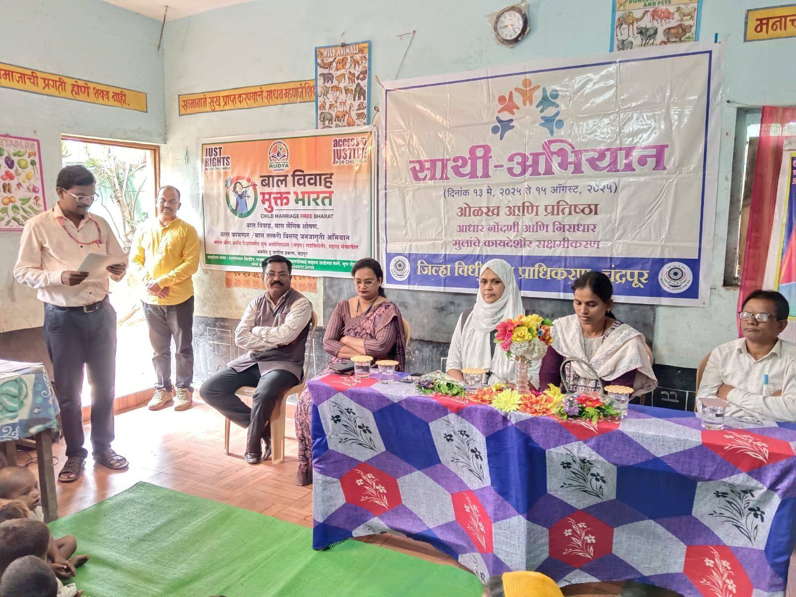 शाळाबाह्य मुलांचा शोध घेऊन त्यांना शैक्षणिक प्रवाहात आणण्यासाठी आधार कार्ड आवश्यक असल्याचे मत ए झेड खान मॅडम यांनी व्यक्त केले. निराधार मुलांचे कायदेशीर सक्षमीकरण करण्याचे काम ” *साथी अभियान ” अंतर्गत सुरू आहे.यावेळी प्रकाश नगर, अष्टभुजा वॉर्डातील मुलांचे आधार कार्ड काढण्यात आले. सदर साथी अभियानाच्या अंतर्गत जिल्ह्यातील विविध क्षेत्रातील वस्त्यांमध्ये सामाजिक सेवक व कार्यकर्त्यांच्या माध्यमातून जवळपास 300 पेक्षा जास्त बालकांची नोंदणी करण्यात आली. ज्यात बाबू पेठ इंदिरानगर नेहरूनगर प्रकाश नगर, आनंद नगर, अष्टभुजा वार्ड, भिवापूर माता नगर अहमदनगर दुर्गापुर तुकूम या प्रभागातील बालकांचा सर्वे करण्यात आला आज दिनांक 11 जुलै 2025 रोजी साथी अभियानाची महाराष्ट्रात पहिल्यांदा सुरुवात करण्यात आली. त्याप्रसंगी शाळेतील तक्रार पेटी मा. सहदिवाणी न्यायाधीश खान मॅडम व महिला बल विकास अधिकारी. भस्मे मॅडम यांच्या समक्ष उघडण्यात आली. जिल्हा महिला बालविकास अधिकारी मीनाक्षी भस्मे मॅडम यांनीही बालकांना व त्यांच्या पालकांना मार्गदर्शन करताना शासन तुमच्या पाठीशी आहे व सदैव पाठीशी राहील तेवढेच सहकार्य तुम्हीही प्रशासनाला करावं व बालकांना शाळेत विशेष प्रवाहात आणण्याचा प्रयत्न करावा असे प्रतिपादन केले. सदर कार्यक्रमाचे सूत्रसंचालन शशिकांत मोकाशे सर यांनी केले तर आभार मारोती दुर्गे यांनी मानले. यावेळी या अभियानाच्या यशस्वीतेसाठी संध्या तोगर, सामाजिक कार्यकर्ता, जिल्हा विधी प्राधिकरण, अजय पवार, पी एल व्ही, मारोती कोसे पी एल व्ही, विवेक चिमूरकर सहाय्यक,राणी मेश्राम, रश्मी भोयर शाळेतील शिक्षक शिक्षकेतर कर्मचारी व शाळा प्रशासनाचा विशेष सहभाग लाभला याप्रसंगी सत्तर बालकांची उपस्थिती होती परंतु तांत्रिक अडचणीमुळे 30 आधार कार्ड बनवण्यात यंत्रणा यशस्वी ठरली. या संपूर्ण कार्याचे साक्ष म्हणून बालकांचे पालक सुद्धा या कार्यक्रमाला अगत्याने उपस्थित होते. या कार्यक्रमातील माननीय न्यायाधीश व महिला बालविकास अधिकारी यांनी या कार्यक्रमाच्या यशस्वीतेसाठी प्रयत्न करणाऱ्या संपूर्ण टीमचे भरभरून अभिनंदन केले.