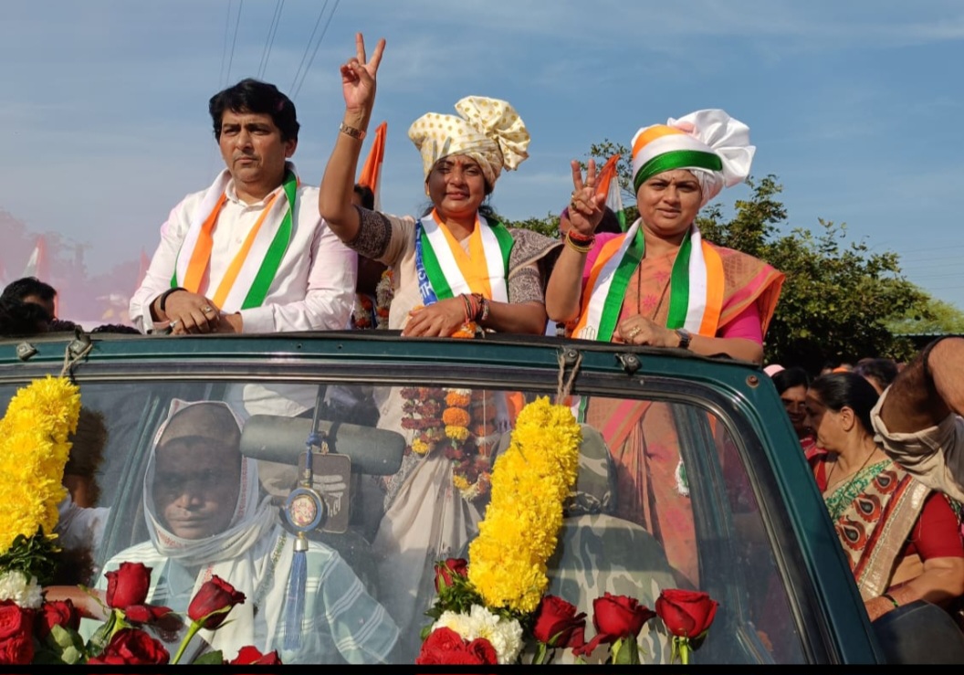 अर्चना ठाकरे की विजय शोभायात्रा कृषि उत्पाद बाजार समिति से निकाली गई।