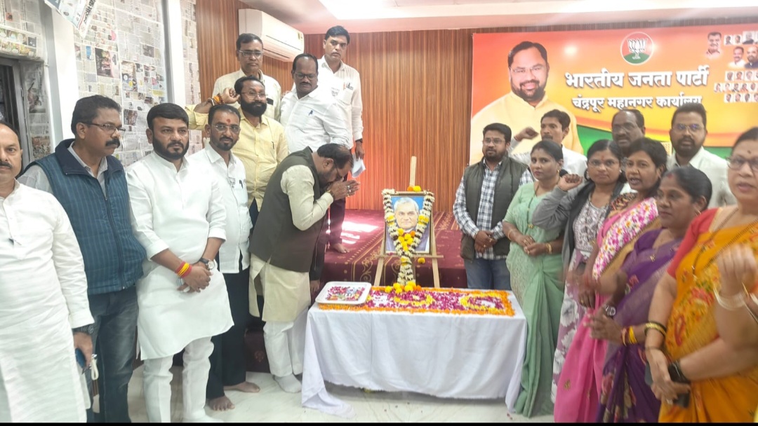 भारताचे माजी पंतप्रधान भारतरत्न अटल बिहारी वाजपेयी यांच्या जयंतीनिमित्त भारतीय जनता पार्टी चंद्रपूर महानगरच्या जनसंपर्क कार्यालयात अभिवादन कार्यक्रमाचे आयोजन करण्यात आले होते. या कार्यक्रमाला आमदार किशोर जोरगेवार यांची प्रमुख उपस्थिती होती. यावेळी भारतीय जनता पार्टीचे महानगर अध्यक्ष सुभाष कासनगोट्टूवार, महामंत्री मनोज पाल, रविंद्र गुरुनुले, सविता दंढारे, भाजप नेते प्रकाश देवतळे, तुषार सोम, नामदेव डाहुले, बलराम डोडाणी, मंडळ अध्यक्ष स्वप्निल डुकरे, रवी जोगी, प्रदीप किरमे, ॲड. सारिका संदुरकर, दशरथसिंह ठाकुर, माजी नगरसेवक सुषमा नागोसे, संजय बोरघाटे, राकेश बोमावार, प्रदीप शास्त्रकार, निलेश बेलखेडे, हर्षल कानमपल्लीवार आदींची उपस्थिती होती.