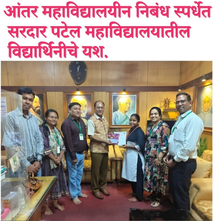 Home चंद्रपूर आंतर महाविद्यालयीन निबंध स्पर्धेत सरदार पटेल महाविद्यालयातील विद्यार्थिनीचे यश.