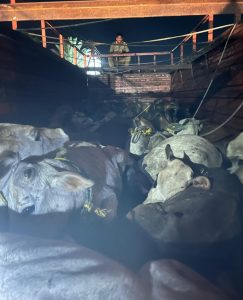 तर एक आरोपी अंधाराचा फायदा घेऊन फरार झाला. सदर ट्रकमध्ये जनावरांना अत्यंत क्रूरपणे आणि निर्दयतेने चारा-पाण्याशिवाय कोंबून कत्तल करण्याच्या उद्देशाने नेले जात होते.
