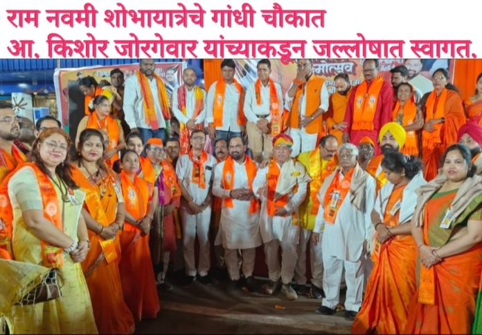 सदर शोभायात्रा गांधी चौकात पोहोचताच भारतीय जनता पार्टी, चंद्रपूर महानगरच्या स्वागत मंचावरून आमदार किशोर जोरगेवार यांनी शोभायात्रेचे जल्लोषात स्वागत केले. यावेळी भारतीय जनता पार्टीचे पदाधिकारी, नगरसेवक आणि कार्यकर्त्यांची मोठ्या संख्येने उपस्थिती होती.