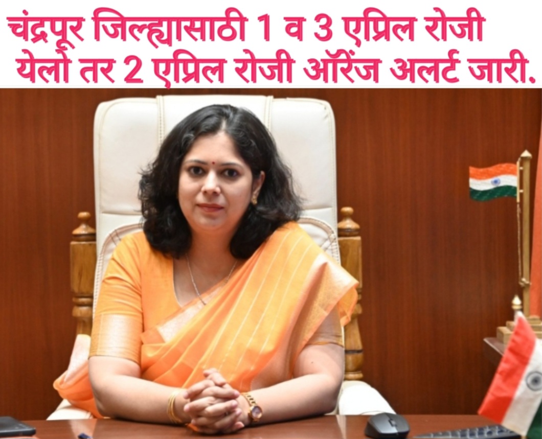चंद्रपूर,(का. प्र.) : नागपूर प्रादेशिक हवामान केंद्राने दिलेल्या सूचनेनुसार चंद्रपूर जिल्ह्यासाठी दिनांक 1 व 3 एप्रिल 2026 रोजी yelo अलर्ट तर 2 एप्रिल रोजी ऑरेंज अलर्ट जारी करण्यात आला आहे.