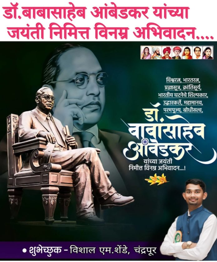 विश्वरत्न , बोधिसत्व, प्रज्ञासूर्य,भारतीय घटनेचे शिल्पकार, कायदेपंतीत, महामानव डॉ. बाबासाहेब आंबेडकर यांच्या जयंती निमित्त त्यांच्या विचारांना आणि कार्याला विनम्र अभिवादन…..
