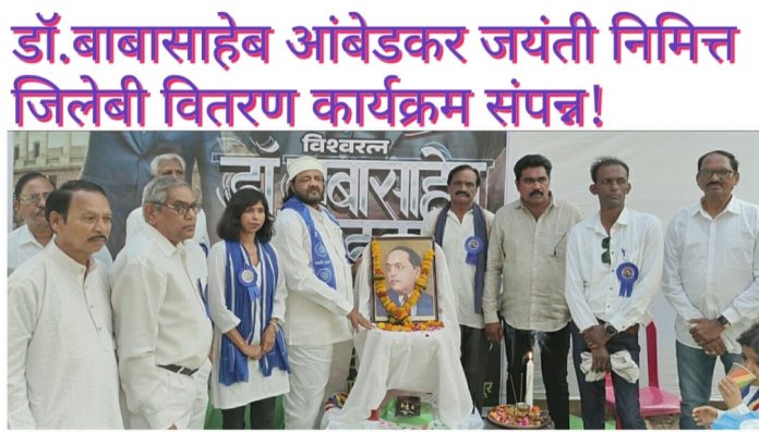 चंद्रपूर(वि.प्र.): शरणम बहुउद्देशीय सामाजिक विकास संस्था चंद्रपूरचे संस्थापक/अध्यक्ष शेखर तावाडे यांच्या अध्यक्षतेखाली डॉ. बाबासाहेब आंबेडकर यांच्या १३५ व्या जयंती समारोह निमित्त ध्वनी अपार्टमेंट समोर नवीनाबाग सिस्टर कॉलनीच्या मुख्य मार्गावर संध्याकाळी ५ वाजतापासून जिलेबी वितरण कार्यक्रम घेण्यात आले.