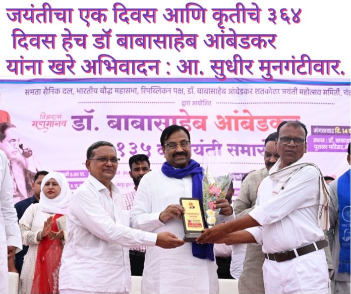 जयंतीचा एक दिवस आणि कृतीचे ३६४ दिवस हेच डॉ बाबासाहेब आंबेडकर यांना खरे अभिवादन : आ सुधीर मुनगंटीवार.