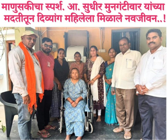 माणुसकीचा स्पर्श.आ. सुधीर मुनगंटीवार यांच्या मदतीतून दिव्यांग महिलेला मिळाले नवजीवन..! आ. मुनगंटीवार यांच्या तत्पर मदतीने पुष्पा खैरकर यांच्या आयुष्यात आशेची नवी पहाट. आ.मुनगंटीवार यांनी दिलेला शब्द पाळत तत्काळ मदत ; मानवी संवेदनांचा हृदयस्पर्शी अनुभव.