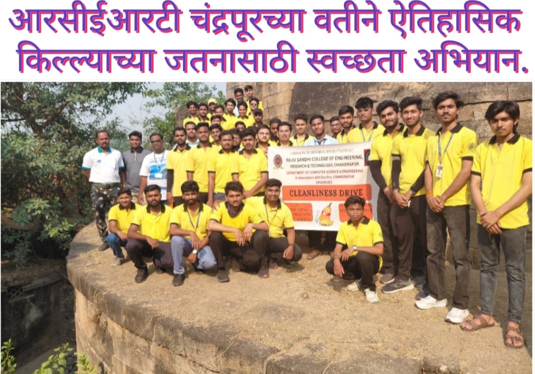चंद्रपूर,(का.प्र) : सरदार पटेल मेमोरियल सोसायटी (ट्रस्ट) द्वारा संचलित Rajiv Gandhi College of Engineering, Research & Technology, चंद्रपूर येथील संगणक विज्ञान व अभियांत्रिकी विभागाच्या वतीने Eco Pro Chandrapur यांच्या सहकार्याने बगल खिडकी ऐतिहासिक किल्ल्याच्या जतनासाठी स्वच्छता अभियान राबविण्यात आले.